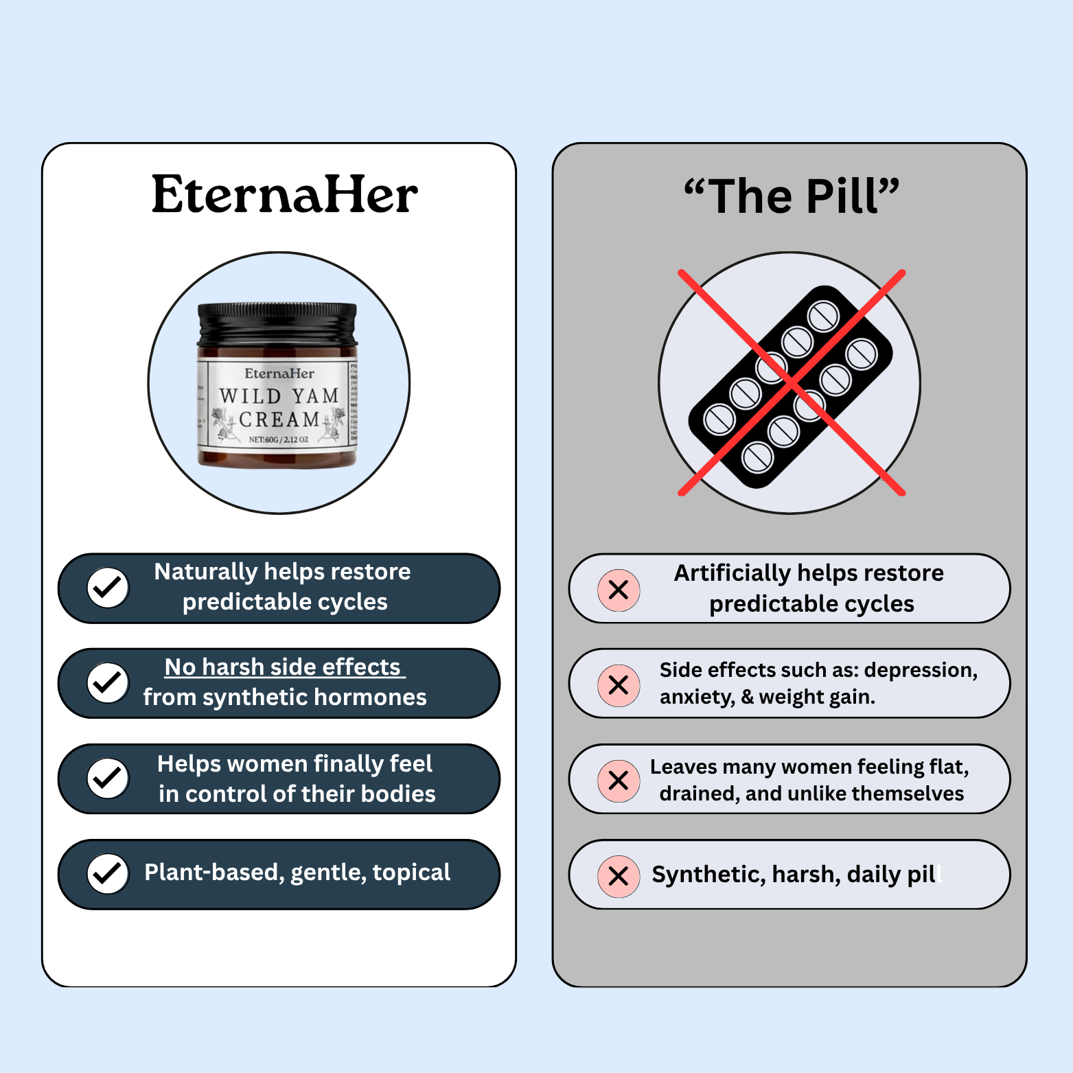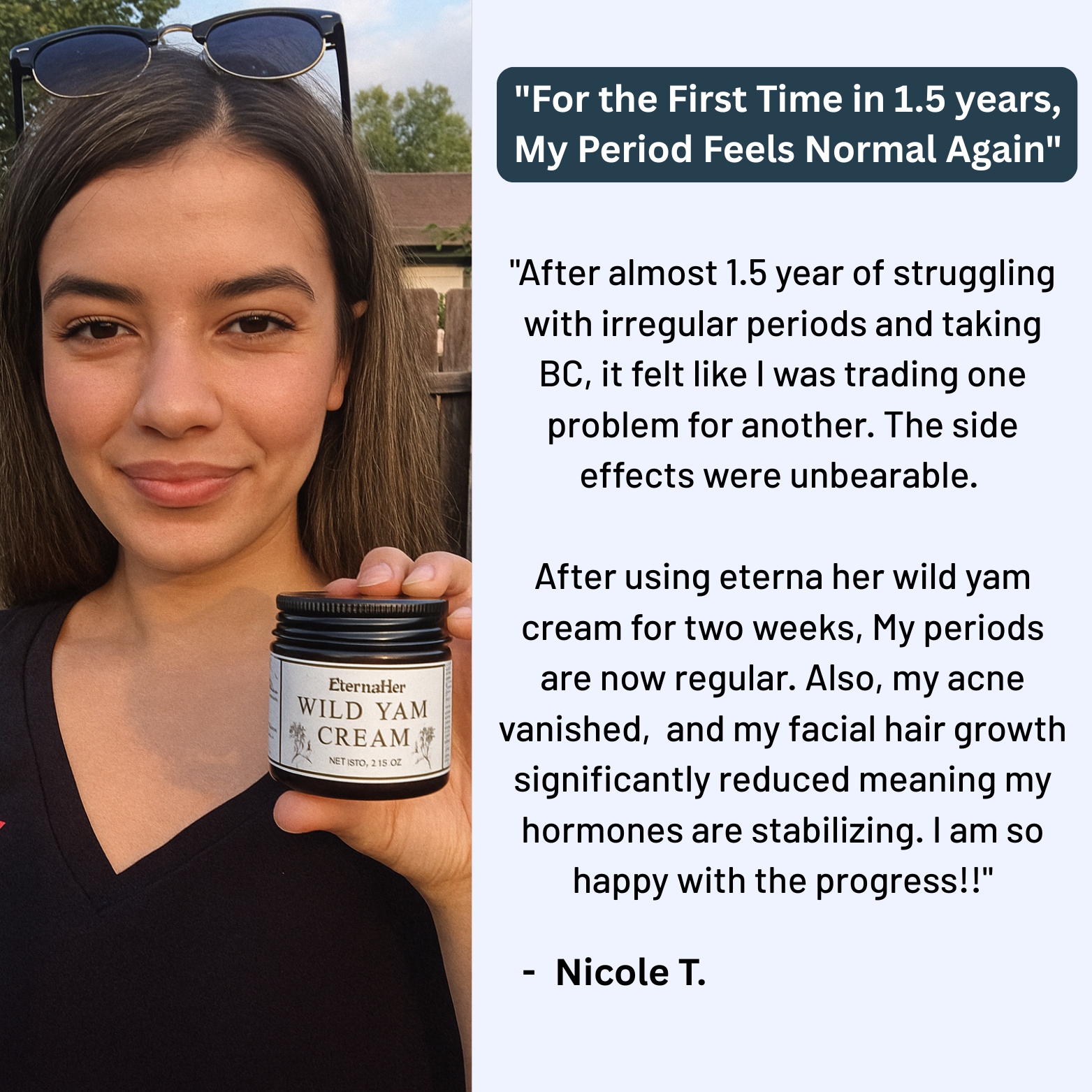 Wild Yam Cream offers a much gentler solution, helping women with PCOS restore predictable cycles naturally, without the harsh trade-offs of synthetic hormones.