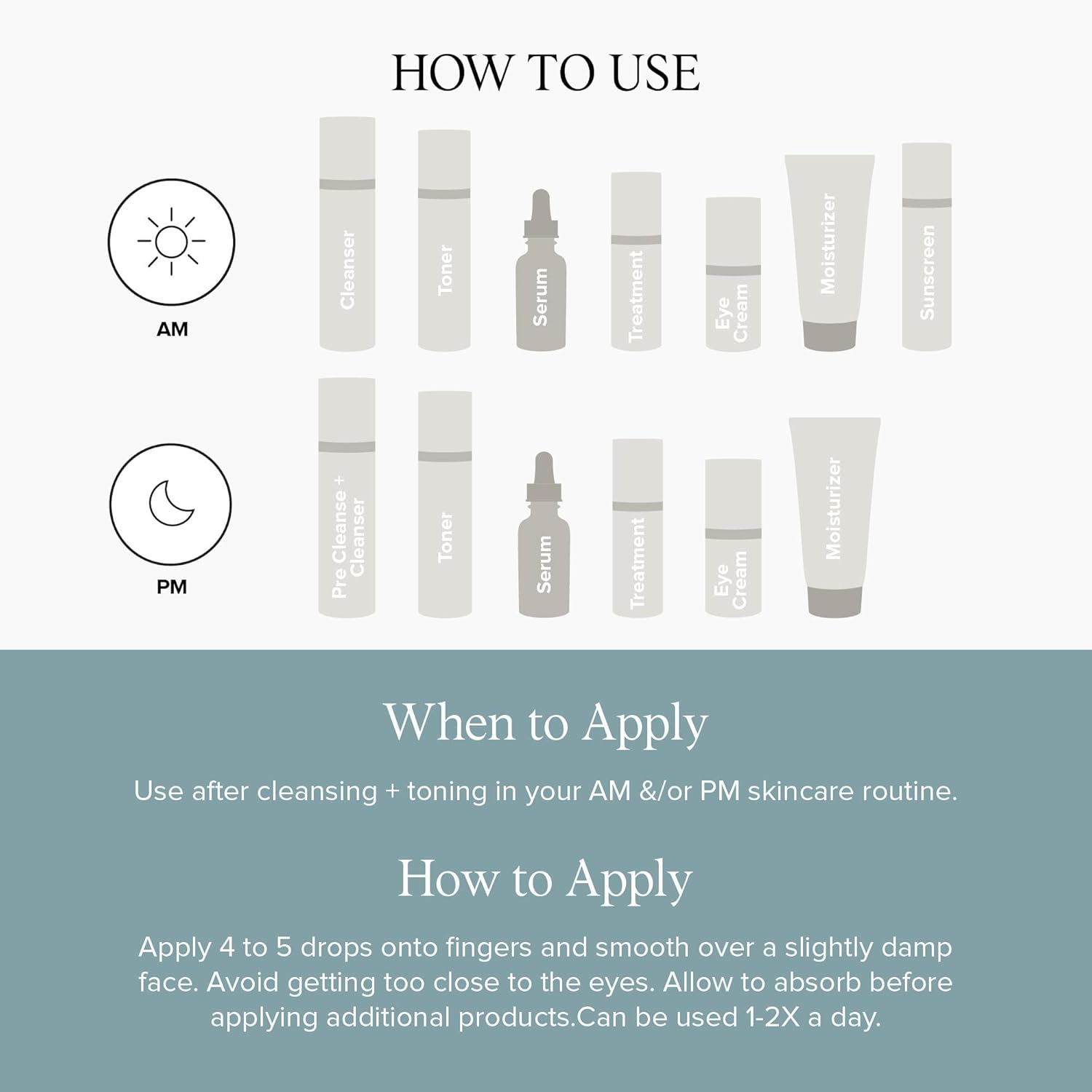 Apply a small amount to clean skin twice daily - morning and night. Gently tap onto the skin and massage the serum into the skin until absorbed.