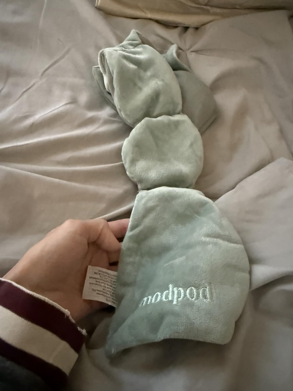 This mask helps my migraines so much. The gentle weight relaxes my face, blocks all light, and I fall asleep faster. It’s become part of my nightly routine.