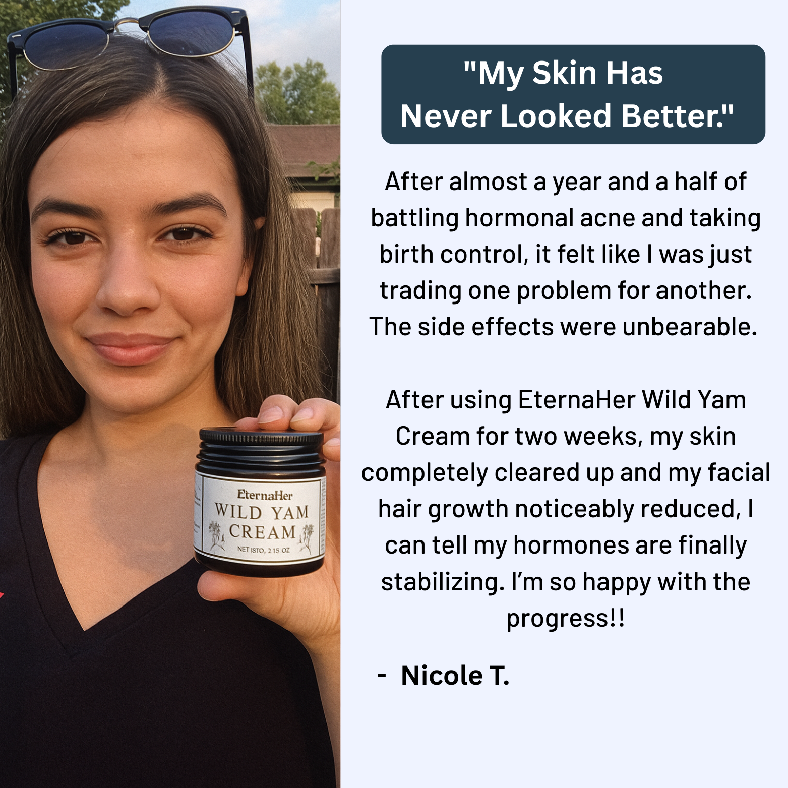 That's why I created Wild Yam Cream to naturally support progesterone balance, helping thousands of women restore hormonal harmony so they can finally trust their bodies and feel in control again, all without the unbearable side effects."